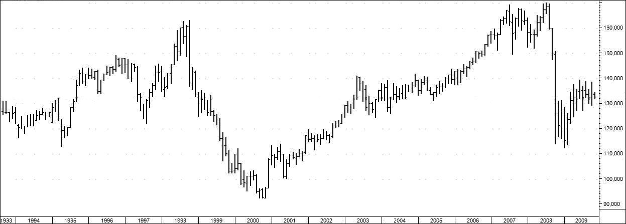 Graf EURJPY 1993 - 2009 (kliknutím na graf zvětšíte obrázek do nového okna)
