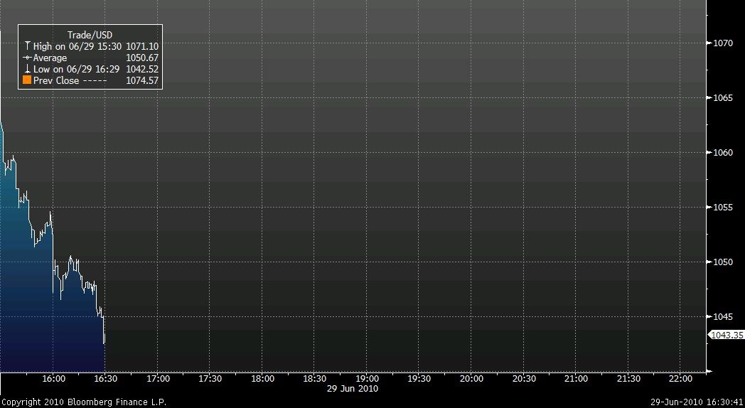 Dnešní vývoj indexu S&P 500 za první hodinu obchodování