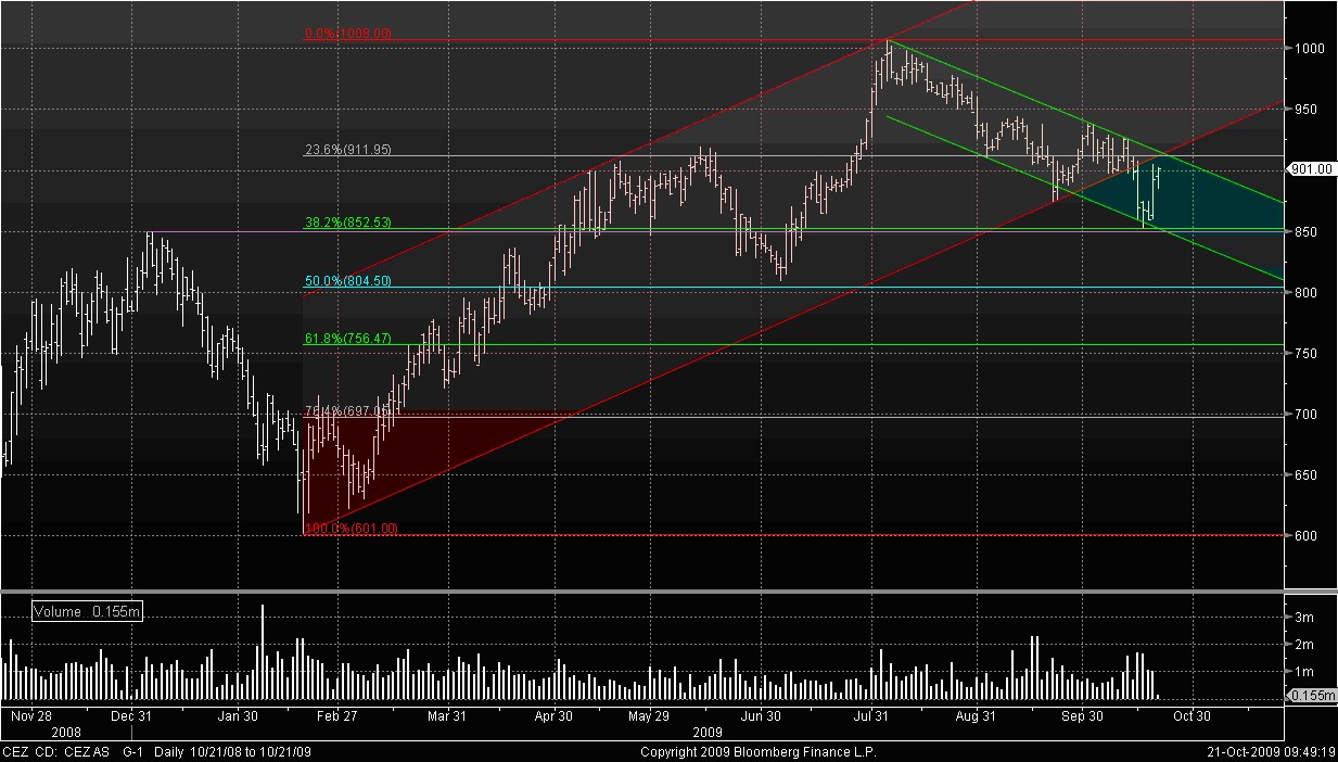podla mna je súčasná cena nadhodnotená - stačí porovnat cez s vykonmi - PE,netvalue... , jej zastaralú štrukturu portfolia s niektor.EU spoločnosťami ako ENEL, Eon, International Power,..len dividendy u ENELu vychádzajú ročne cca 10%!!!pričom ma vysoky podiel ekolog.energie oproti cezu s veľ. rastovým potencialom aj vbuducnosti. Cez ešte žije z kvazi monopolu v ČR ktorý jej už pomali ale isto bude končiť a pocíti to výraznejšie v konkurenč. tlaku od buduceho roku. Relativizovaná cena cez je podla mna niekde 740-770ck. Pokles ceny netreba hladat v tech.analýze alebo v IPO PGE, poklesli aj ostatný europsky hráči a ešte viac...pozri napr. EON...PGE len može zvýšiť tlak zvlášt na Čez ako SE hráča...