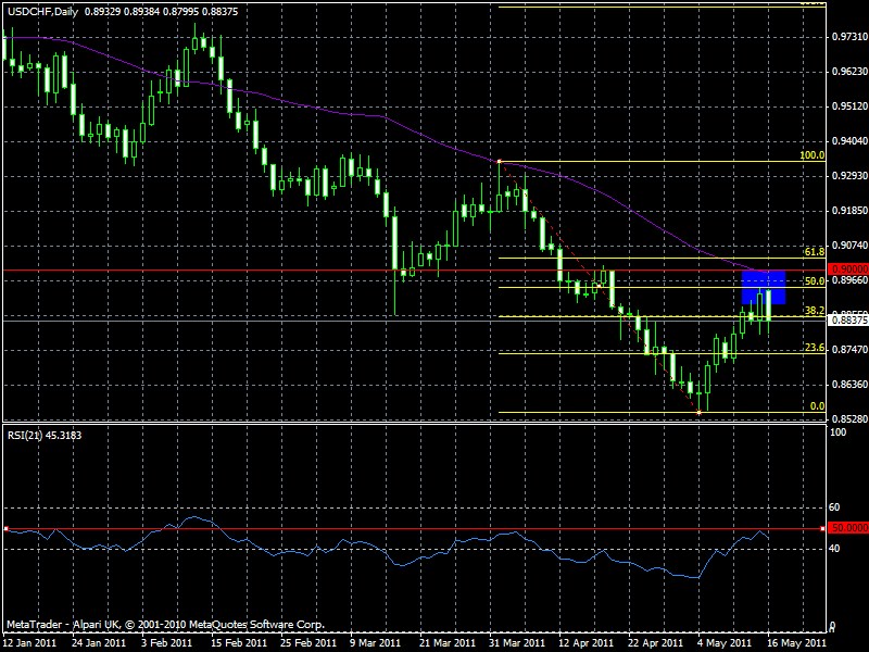 Ak by však americký dolár pokračoval v zostupe, stále ho čaká ešte nepekná psychologická a historická rezistencia (support) pri hodnote 0.9000 alebo (tripple zeros), kde leží nejeden limit order na nákup švajčiarskeho franku a zvažovať preto kúpu USD je zatiaľ predčasné.
