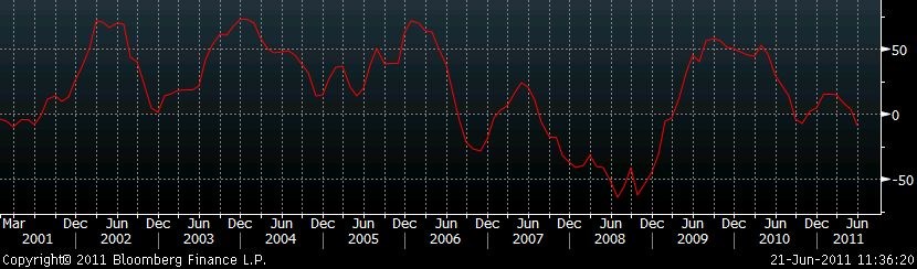 Průzkumu mannheimského ekonomického institutu ZEW mezi vlivnými investory a analytiky v červnu ukázala propad na nejhlubší úrovně za více než dva roky. Index ekonomického sentimentu ZEW spadl na -9,0 bodu z květnových 3,0 bodu. Ocitl se tak poprvé od loňského října v negativním teritoriu. Konsensuální odhad analytiků dle agentury Bloomberg sice očekával záporný výsledek indexu ZEW, ale čekal poloviční meziměsíční propad na -3,0 bodu.