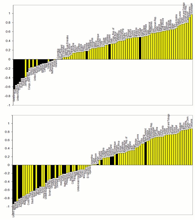 Jak ukazuje studie Fiscal policy in developing countries: Escape from procyclicality (Jeffrey Frankel, Carlos A. Vegh, Guillermo Vuletin), ze které obrázky jsou, v letech 1960-1999 nebyla většina světa schopna používat fiskální politiku k tlumení cyklů, týkalo se to zejména rozvíjejícího se světa. Příkladný byl naopak přístup Švýcarska a Finska. Jak ukazuje druhý graf, situace se zlepšuje, protože podíl neschopnosti klesl zhruba na polovinu, do čela premiantů se dostaly Spojené státy a Norsko.