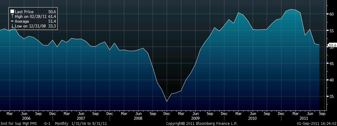 Aktualizováno Na makrodata balancující na hraně mezi expanzí a útlumem přecitlivělí investoři přijali s povděkem údaj o aktivitě v americkém zpracovatelském sektoru, který neukázal na přiblížení se útlumu. Index aktivity ISM ve zpracovatelském průmyslu Spojených států v srpnu klesl jen o 0,3 bodu na 50,6 bodu a jednak nenaplnil negativní očekávání poklesu na 48,5 bodu a zejména se tak nepropadl pod 50bodovou úroveň dělící expanzi a útlum v sektoru, ani se příliš nepřiblížil úrovni 42,5 bodu, která by ukazovala na zlom do útlumu celé ekonomiky. Odhady analytiků sahaly od 44 do 52 bodů. Pokud by se naplnil pokles indexu na očekávaných 48,5 bodu, znamenalo by to první kontrakci v sektoru od července roku 2009. Právě tehdy oficiálně skončila recese americké ekonomiky.