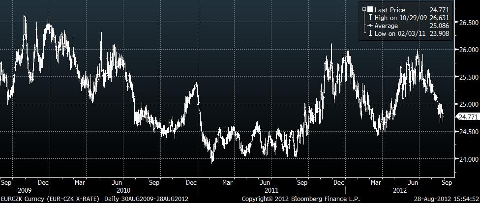 | CZK/EUR | 24.7700 | -0.2457 | 24.8610 | 24.6650 |