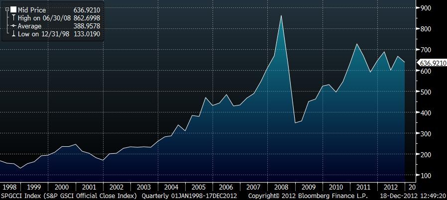 Zatímco v posledních letech komodity často platily za nejschopnější multiplikátory hodnoty vložených prostředků mezi všemi kategoriemi aktiv, letos zatím přinesly investorům spekulujícím na jejich růst jen ztráty. Index Standard & Poor’s GSCI shrnující vývoj spotových cen hlavních komodit od začátku roku ztratil 1,24 procenta. Na poklesu indexu se přitom nejvíce podepsala klesající cena ropy a nafty, jelikož energetické komodity mají v indexu Standard & Poor’s GSCI asi 70% váhu.