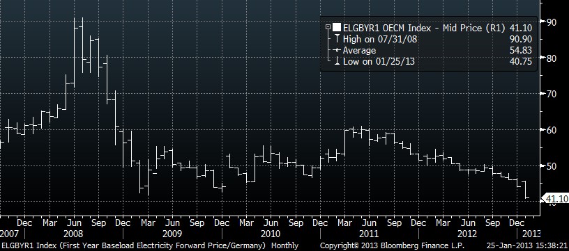 Dnes cena elektřiny na německé burze klesá dále a dostává se až nové historické dno 40,75 EUR/MWh (roční kontrakt). Novák přiznal, že pokud bude pokles cen pokračovat, bude to zvyšovat tlak na zisky . Energetická společnost se podle něj snaží proti poklesu zajišťovat uzavíráním dlouhodobých kontraktů.