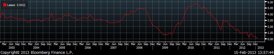 Meziroční růst indexu spotřebitelských cen, který je ukazatelem inflace, v Řecká podle dat tamního statistického úřadu (ELSTAT) klesá již od října. Tehdy rostl 0,9% tempem, o měsíc později to bylo již jen 0,4% růst a v prosinci potom již zmiňovaných 0,3 procenta.
