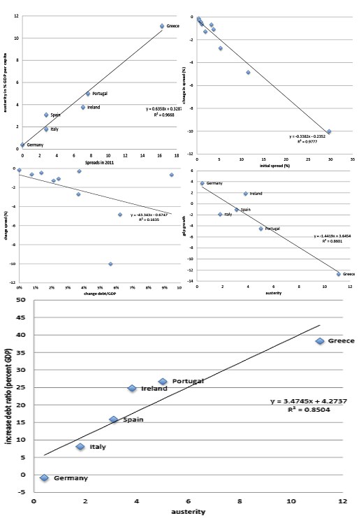 Naposledy jsem se měnové unii našich sousedů věnoval v „Dluhy je třeba splácet prací, ne utrpením“ a „Euroloď skoro opravena, necháme ji ale stejně potopit?“. Dnes bych se rád věnoval obrázkům ze studie „Panic-driven austerity in the Eurozone and its implications“ (Paul De Grauwe, Yuemei Ji, 2013). Tato studie si hned po uveřejnění získala zaslouženou pozornost a byla by jedním z mých kandidátů na způsob, jak zapsat vývoj v eurozóně do učebnic.