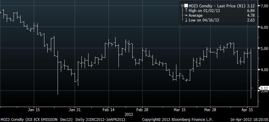 Europoslanci dnes překvapivě zamítli dlouho diskutovaný návrh Evropské komise, který měl oživit skomírající trhu s emisními povolenkami. Okamžitou reakcí trhu byl propad cen emisních povolenek na nové historické minimum, cen elektřiny nejníže od 2005 i pokles cen „bezemisních“ energetik jako je Verbund, či , nebo i český až o 5 procent.