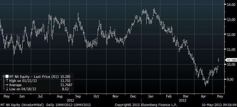 Největší světový výrobce oceli dnes předvádí nejsilnější rally od září loňského roku poté, co vykázal za první tři měsíce zisk EBITDA 1,57 miliardy dolarů, a předčila tak očekávání trhu na úrovni 1,32 miliardy dolarů. Celkově ale ocelář nezapřel zhoršené podmínky na trhu v důsledku slabší průmyslové aktivity a vykázal čistou ztrátu 345 milionů dolarů proti zisku 92 milionů dolarů před rokem. Ztráta nicméně výrazně klesla ze 3,8 miliardy dolarů v posledních třech měsících loňského roku. Firma, která působí také v České republice, dále uvedla, že v celém letošním roce počítá se zvýšením základní ziskovosti a zlepšení čeká již v příštím kvartále.