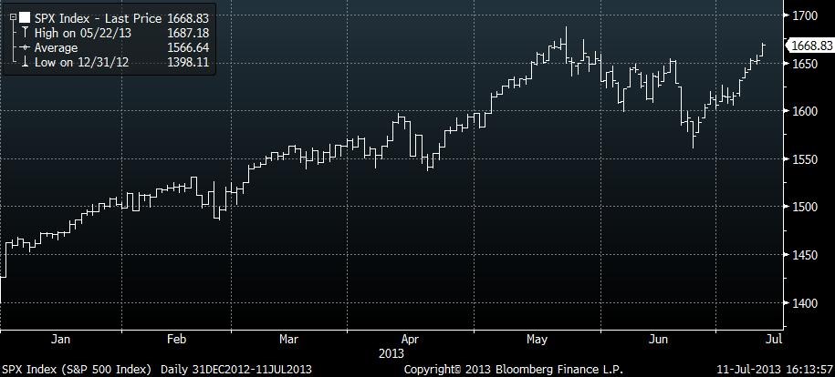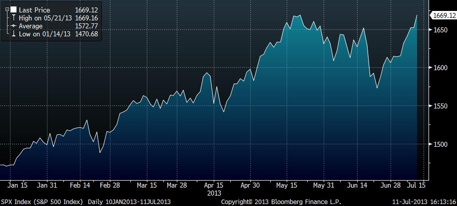 V každém případě index S&P 500 překonal hladinu historicky nejvyššího závěru, když se v úvodu obchodního dne posunul nad 1670 bodů (intradenní historické maximum 1687b.). Index pak od 24. června zpevnil přes 6 procent a přes pozitivní prostředí aktuálně nabízí prostor pro ziskové realizace.