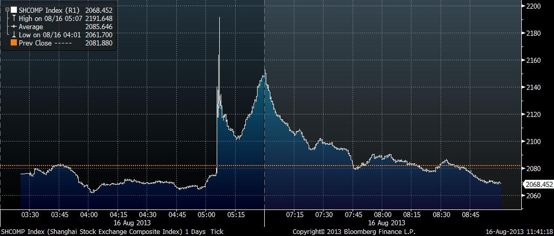 Více světla do toho, co mohlo stát za dnešním největším výkyvem čínského indexu od vrcholu globální finanční krize – podle agentury Bloomberg byl nejvyšší od března 2009 – vneslo po závěru obchodování oznámení devátého největšího brokera v zemi, společnosti Everbright Securities. Ta se ve zprávě pro šanghajskou burzu doznala k chybě při obchodování v důsledku selhání obchodních systémů společnosti. Další podrobnosti oficiální zpráva neuvádí, ale vlivný čínský deník s odvoláním na své zdroje uvádí, že firma požádala burzu o zrušení chybných obchodů. Provozovatel čínského akciového trhu se zatím omezil jen na ujištění, že celou věc rozhodně důkladně prošetří. To však otevírá prostor trhu pro další spekulace.