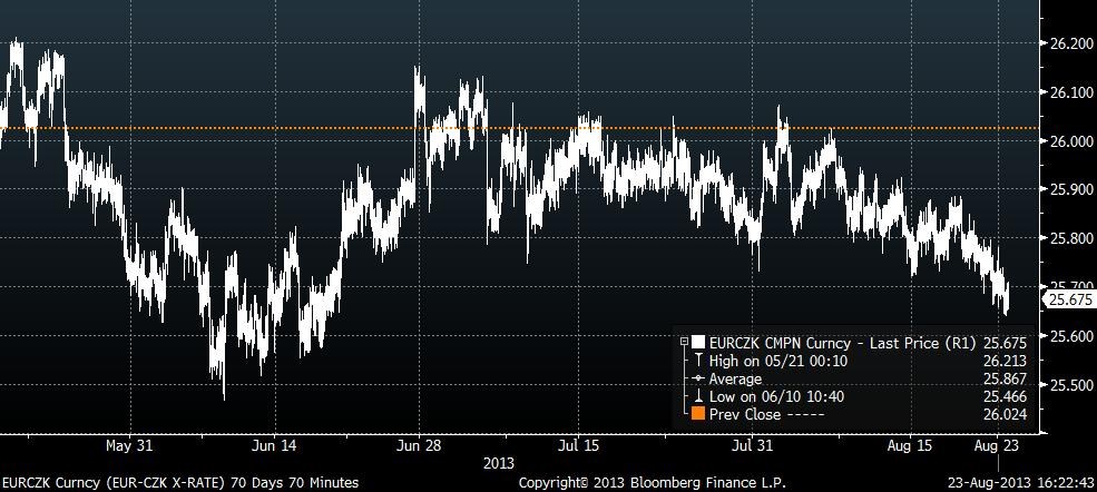 | CZK/EUR | 25.6625 | -0.1750 | 25.7300 | 25.6220 |