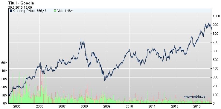 Vývoj ceny akcií Google