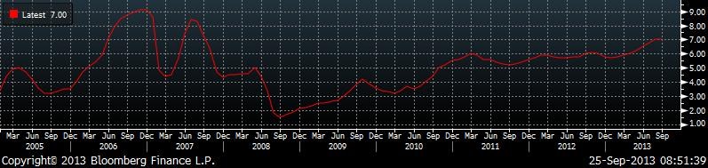 Index, který předpovídá spotřebitelskou náladu pro příští měsíc na základě průzkumu mezi asi 2 tisíci Němců, vzrostl na 7,1 bodu z revidovaných sedmi bodů v předchozím měsíci. Zářijová hodnota před revizí činila 6,9 bodu a analytici dotazovaní agenturou Bloomberg přitom očekávali, že hodnota indexu pro říjen stoupne na sedm bodů.