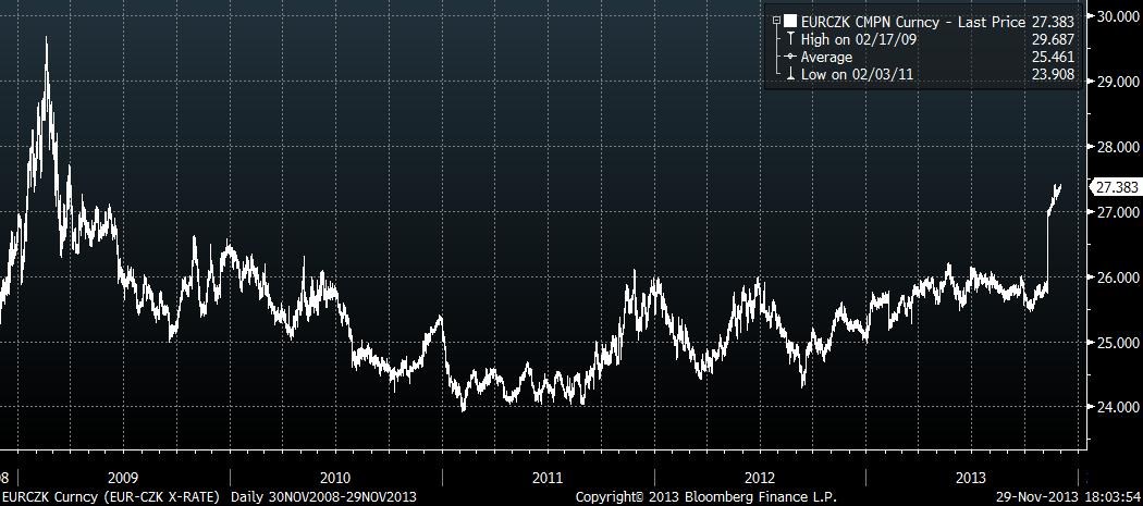 Návratnost investice do českých dluhopisů od oznámení intervence ČNB a skokového oslabení koruny (dne 7. listopadu 2013) dosáhl již 0,9 procenta, což je podle dat European Federation of Financial Analysts Societies spolu s dluhopisy švédské vlády jedna z nejlepších návratností ze všech 26 sestavovaných národních indexů státních dluhopisů.