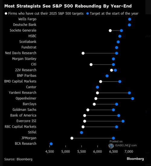 Očekávání stratégů, centrální banka a ekonomika: Graf ukazuje, jak se mění cíle stratégů pro index S&P 500 na konci letošního roku. Nejníže jej má BCA Research, kde jej přitom od počátku roku nezměnili. Největší korekci provedli v , nejoptimističtější jsou podle obrázku v a :