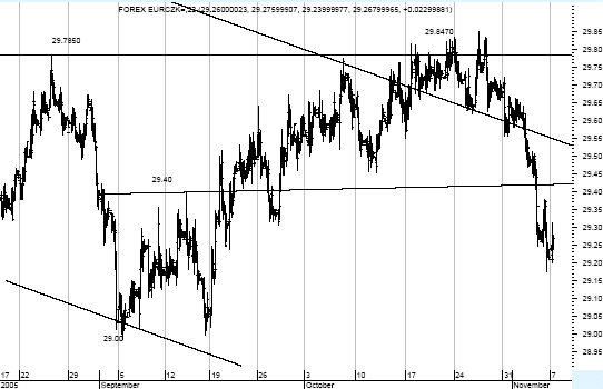 Obrázek – ukázka denní technické analýzy, 7.11.2005 9:00 hod. SEČ