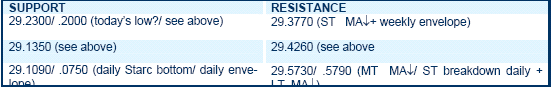 Z technického pohledu na vývoj kurzu jsou důležité především úrovně tzv. rezistence a podpory (support), které jsou v případě denní analýzy platné pro konkrétní den. Rezistence i podpora má dále 3 hladiny, které technický analytik považuje za klíčové pro obchodování v daném časovém horizontu. „Proražení“ těchto úrovní totiž může vést k výraznějšímu pohybu kurzu jedním nebo druhým směrem. Doporučujeme na těchto úrovních nastavit alerty, například formou sms (v rámci Patria Plus možné