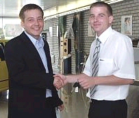 I když jsem auto dřív měl, teď zrovna žádné nemám, o to je výhra příjemnější," řekl Petr Vyhnánek při přebírání klíčů od nového vozu.