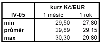 Tabulka: Odhad kurzu pro horizont 1 měsíce a 1 roku ke dni 12.4.2005