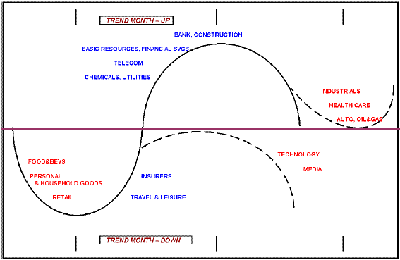 Nejvýkonnějšími akciemi jsou z dlouhodobého pohledu akcie společností z odvětví výroby základních materiálů, chemie, zpracování ropy a zemního plynu, telekomunikace a služby. Některé sektory se zdají být přeprodané, například technologické odvětví. Pojišťovnictví se trochu stahuje po posledním cca 5% rally. Nákupní příležitosti se ukážou v následujících měsících. Bankovní sektor je silně překoupen.