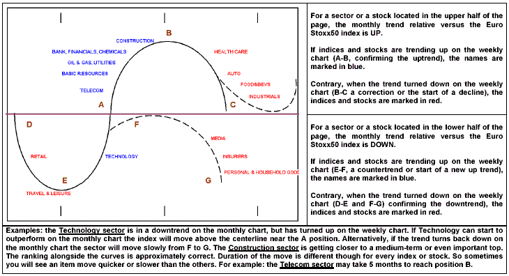 Index je nyní v sestupném trendu, ale většina akcií se nyní odrazila díky iniciační nákupní podpoře. Výjimku tvoří BMW a Daimler-Chrysler, které obnovily svůj pád relativně k indexu Euro Stoxx 50.