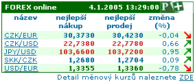* Pro komfortní a rychlý přehled jsme na homepage umístili tabulku základních devizových kurzů s unikátní „push“ technologií zobrazování dat v reálném čase. Podobně funguje i stávající tabulka pro akciový SPAD na naší homepage. Není třeba připomínat, že placená verze stránek disponuje nezpožděným devizovým trhem.
