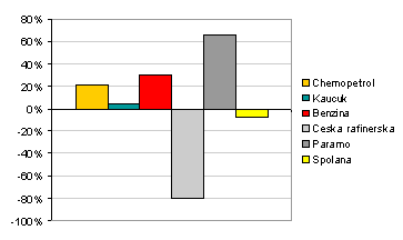 Upozorněme na vcelku pozitivní výsledky Chemopetrolu, který výrazně investoval do svých kapacit a přes možné počáteční komplikace se zdá, že tyto mohou mít potenciál pokrýt své náklady kapitálu (ROIC je ovšem u většiny společností na úrovni hluboko pod WACC).