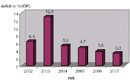 v roce 2007 by deficit neměl překročit 3,5 % HDP. Již v letošním roce očekáváme nejnižší