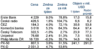 PX-50 připsal 3,6 % a index blue chip společností PX-D vzrostl za týden o 4,7 % a