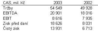 Provozní zisk se zvýšil na 8,62 miliard korun z 7,94 miliard, celkové výnosy se zvýšily na 54,55 mld. Kč z 49,93 miliard v roce 2002.