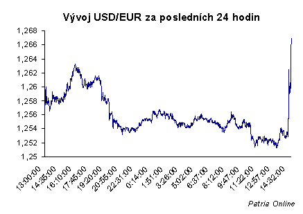 Americký dolar prudce klesá o více než 1 procento na 1,2665 USD/EUR v průběhu pouhých několika minut po zklamání z informací o americkém trhu práce. Ministerstvo práce zveřejnilo lednovou míru nezaměstnanosti, která poklesla na 5,6 % z 5,7 %. Daleko větší váhu trh ale přikládá zprávě o počtu pracovních míst. Mimo zemědělský sektor ekonomika vytvořila v lednu meziměsíčně jen o 112 tisíc pozic více, což ostře kontrastovalo s očekávaným přírůstkem 160 tisíc míst.
