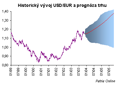 Domníváme se, že některé extrémně negativní scénáře jsou přehnané. Minimálně ještě příští rok bude mít dolar fundamentální potenciál posilovat na 1,05, resp. s klesající pravděpodobností na paritu s eurem. V horizontu ještě delším souhlasíme s možností, že americká měna bude postupně oslabovat a přesáhne historická minima k euru (1,1932 USD/EUR). Myslíme si, že vysoký schodek běžného účtu platební bilance není takovým rizikem, jak se všeobecně traduje. USA jsou schopné přitáhnout dostatečné množství financujících prostředků. Evropský ekonomický růst bude i v roce 2004 výrazně zaostávat za USA, očekává se zhruba +1 až +2% HDP v eurozóně, ale +3 až + 4% v USA. Americký Fed podle našeho názoru začne zvyšovat úrokové sazby dříve než ECB, a vyšší výnosy tak zvýší atraktivitu investic financujících americké dovozy. Problém obchodní nerovnováhy ve světě je ve značné míře problémem nedostatečné domácí poptávky v zemích mimo USA. Zvýšení výkonu Evropy a zvýšení evropské spotřeby by mohlo tuto nerovnováhu řešit, aniž by muselo dojít k výraznému (!) oslabení americké měny.