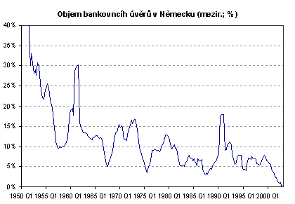 Deflaci se dobře daří také v zemích, kde se do potíží dostal bankovní sektor. Učebnicovým příkladem je Japonsko. Německo tuto hypotézu potvrzuje. Tempo růstu objemu úvěrů se v současnosti pohybuje kolem nuly a ekonomický ústav DIW charakterizoval situaci na německém bankovním trhu jako credit crunch.