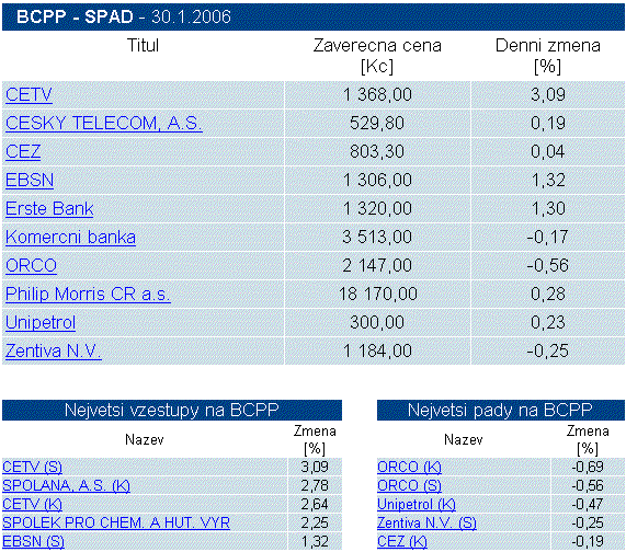 Pražská burza opět dokázala udržet svoji hodnotu v plusu, když se nejvíce dařilo akciím Erste Bank, které na 1 300 Kč našly podporu a dnes dosáhly na 1 320 Kč. Také akcie mediální společnosti CME vyladily svůj obraz a po pátečním růstu v zámoří zjasnila jejich cena na pražském trhu až na 1 370 Kč. Hranici 300 Kč prozatím drží Unipetrol, ačkoliv jeho cena krátkodobě prokmitla pod tuto hranici. Střídavý proud objednávek zaznamenaly akcie elektrárenské společnosti ČEZ, když v jeden moment atakovaly 810 Kč a pak opět klesaly k 800 Kč.