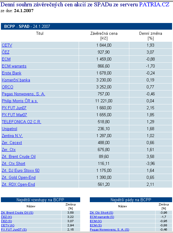 Oficiální kurzovní lístek se závěrečnými hodnotami. Uživatelé www.patria.cz si mohou zdarma registrovat jeho zasílání e-mailem: