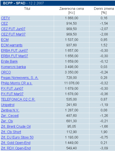 Oficiální kurzovní lístek se závěrečnými hodnotami. Uživatelé www.patria.cz si mohou zdarma registrovat jeho zasílání e-mailem: