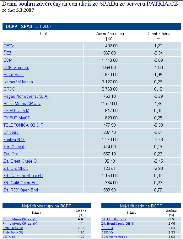 Oficiální kurzovní lístek se závěrečnými hodnotami. Uživatelé www.patria.cz si mohou zdarma registrovat jeho zasílání e-mailem: